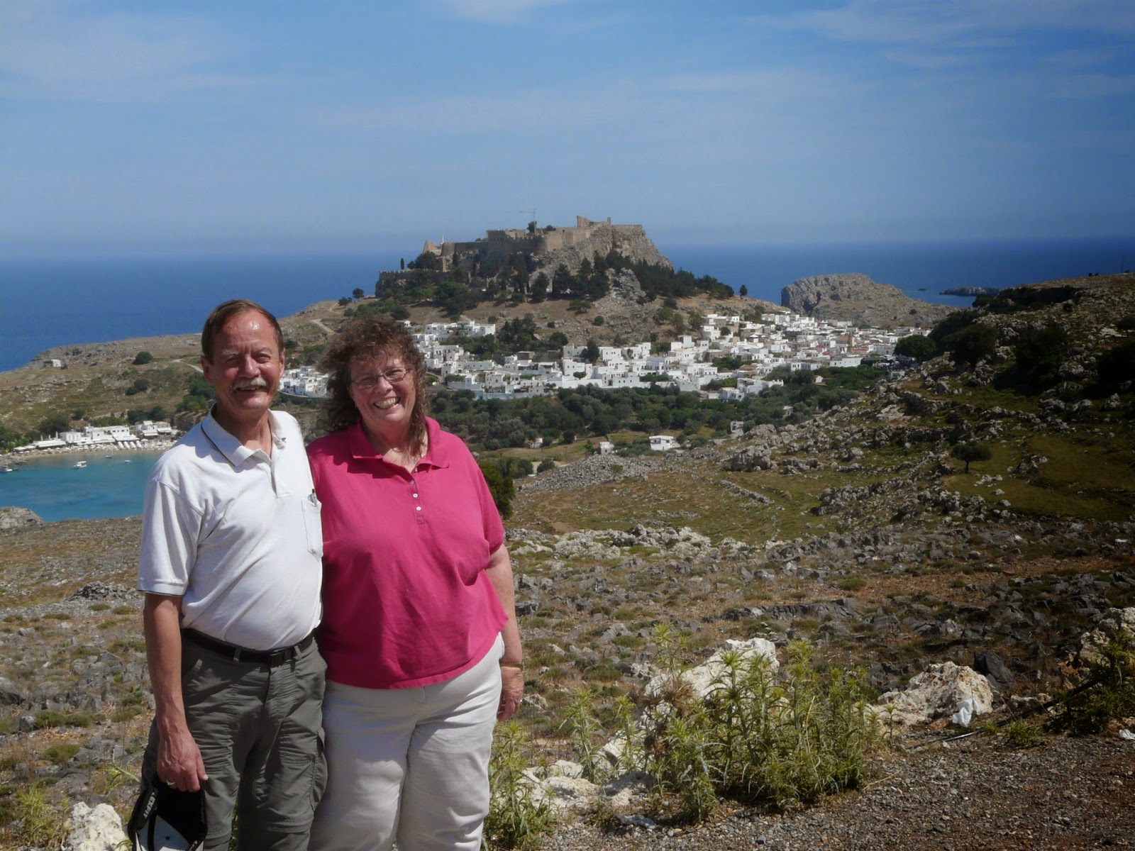We did gather most of the Balza clan together to visit Lindos. On the way, we stopped at seven springs, where the springs form the source of a local stream. Upon reaching Lindos, we gave everyone freedom to do whatever they wanted and set up a return time. We climbed 300 stairs to the top of the acropolis. In Classical times, it had 3 large terraces with a temple to Athena at the top, 116 meters above the sea. From the top you see St. Paul's Bay where his ship capsized. In the 14th century, a Byzantine fortress was built on the acropolis. After visiting the acropolis we had a nice roof top lunch, followed by wandering the village of Lindos with its many shops.